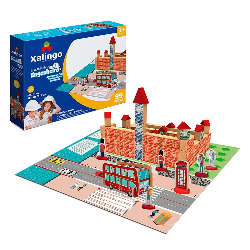 O brinquedo de montar Brincando de Engenheiro Londres, é composto por 99 peças, sendo 93 feitas em madeira reflorestada, 6 peças de plático e tinta atóxica, e mais um tabuleiro informativo, que contém informações e curiosidades sobre Londres! São vários formatos que você pode montar, possibilitando montagens infinitas, o que faz com que as criações fiquem do tamanho que você quiser!