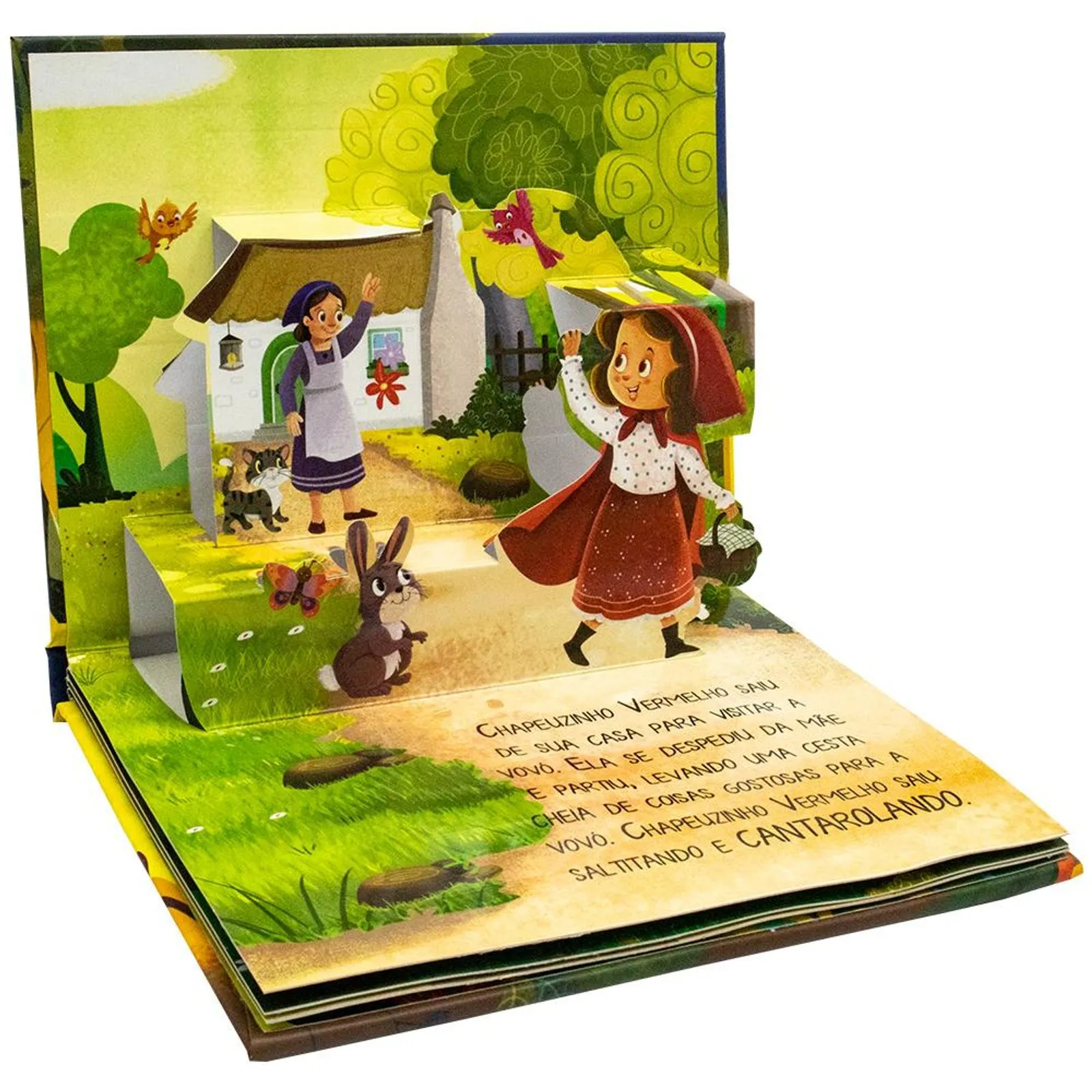 Torne a hora da história um momento interativo, com este incrível livro pop-up da história A Chapeuzinho Vermelho, que apresenta os personagens favoritos dos clássicos da literatura infantil, além de cenários encantadores.