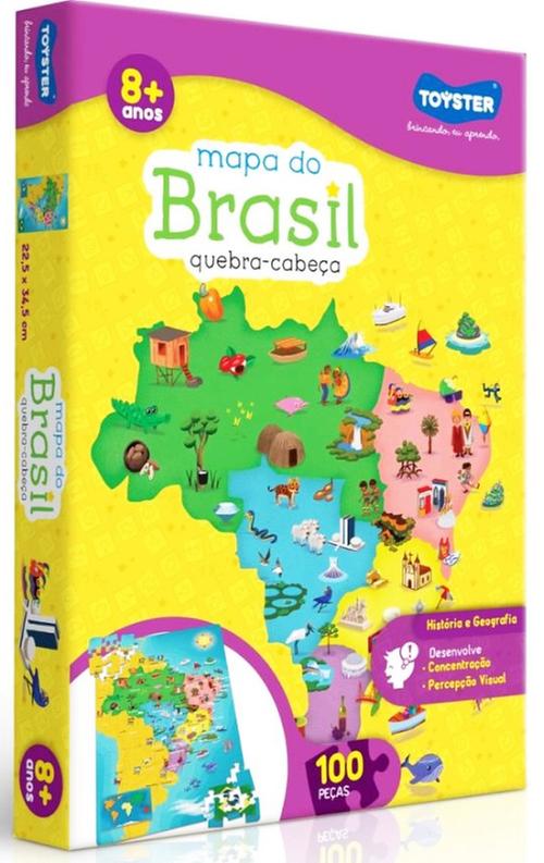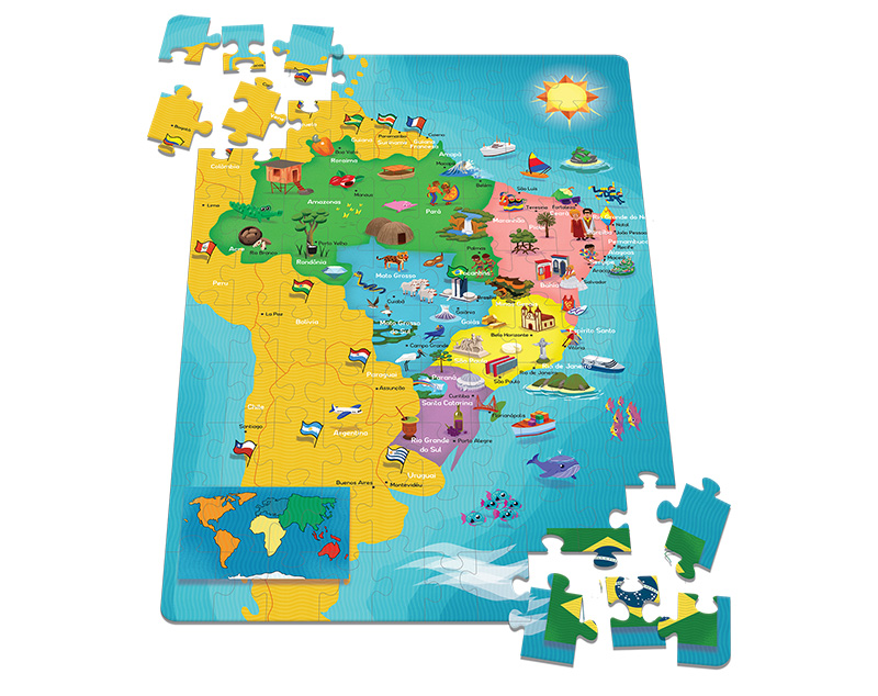 Quebra-Cabeça Mapa do Brasil, com este quebra-cabeça a criança aprende a reconhecer no mapa do Brasil, suas regiões, estados, capitais e algumas das suas características.