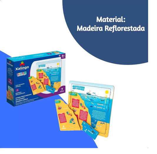 O STEAM Quebra-Cabeça Profundezas do Oceano é um brinquedo educativo que possibilita a montagem de um quebra-cabeça mostrando cada camada do Oceano.