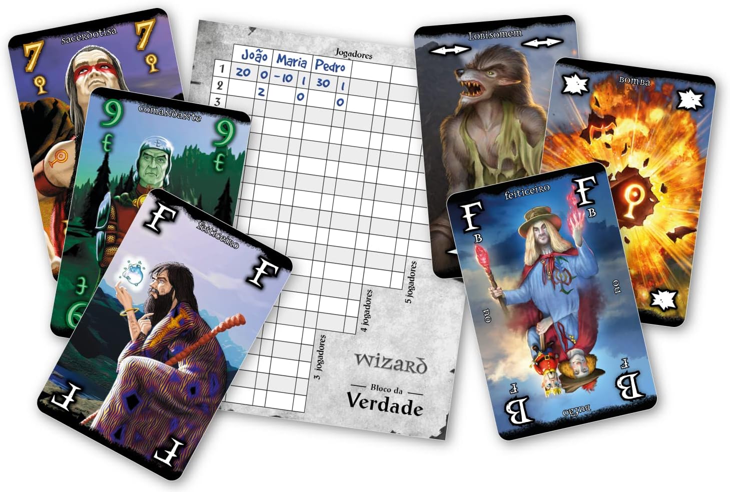 Neste mágico jogo de cartas, como um aprendiz de feiticeiro, você deve utilizar seus dons e adivinhar seus resultados nas rodadas.